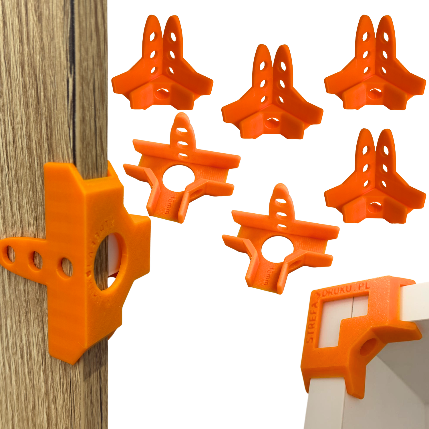 ➡️ Zestaw przedłużonych uchwytów stolarskich 90° – 2× T + 4× L do płyt 18 mm